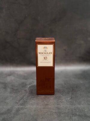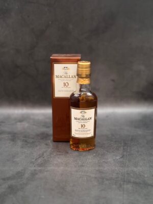One of the first distilleries in Scotland to legally hold a licence was The Macallan. Now they have built a world-wide reputation as one of the world’s leading single malt whiskies distillers. The Macallan whilst using traditional craftsmanship methods and combining the natural raw materials from North America, Spain and Scotland have managed to retain these traditional influences. This is a genuine miniature, with box of the last version of the 10 year old, before they switched to 12 year old.
