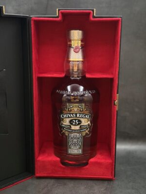 Chivas Regal 25 year old is a showstopper of a blend, a serial award winner that always delivers. It’s crafted from a mighty blend of malt and grain whiskies which have been matured in specially-selected casks for at least a quarter of a century.