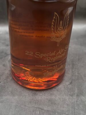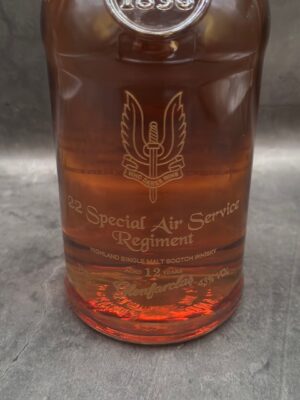 This particular bottle is not a general commercial release. It was a private bottling, commissioned and specially engraved for the 22 Special Air Service (SAS) Regiment. As a private commission, these bottles were not widely available to the public. They were likely produced in limited quantities for members of the regiment, which makes them much rarer than the standard Glenfarclas 12-year-old.
