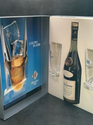 Capture an incredibly rare piece of Cognac history with this Hennessy Glace Special Gift Set, a vintage collectible from the late 1980s or 1990s. This is a true collector’s item for the dedicated Hennessy aficionado, featuring a classic bottle of Hennessy VSOP Cognac from that era. The set is beautifully preserved in its original box and is complete with two exclusive, branded Hennessy “Glace” glasses, designed to enhance the Cognac on the rocks experience. As a rare vintage gift set, this is a unique opportunity to buy collectible Hennessy and own a genuine artifact from the world’s most famous Cognac house.