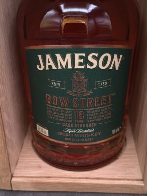 Jameson Bow Street 18 Years is a special blend of rare pot still and grain Irish whiskeys produced at the Midleton distillery. After ageing for almost two decades, these whiskeys are married together and spend their final finishing period in our original home, at the Jameson Distillery Bow Street in Dublin.