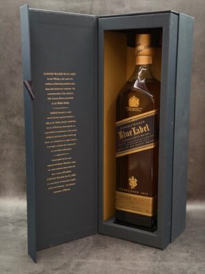 The blend recreates the authentic flavor of the 19th-century blends created by John Walker & Sons. It is renowned for its incredible smoothness, balancing heavy peat smoke with rich sweetness. This specific bottle is the 750ml version (a size often found in international markets or duty-free, as standard UK domestic bottles are 70cl), presented in the classic blue luxury gift box with a magnetic side closure.