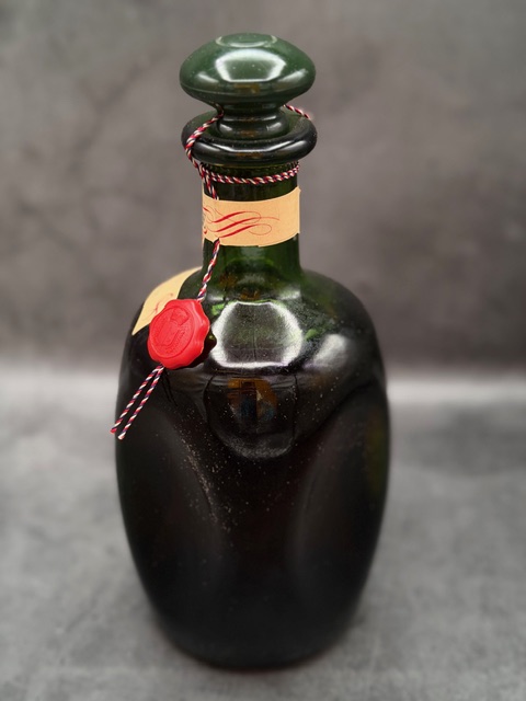 Appearance: Distinctive dark green vintage bottle with a red wax seal and classic cream labeling.