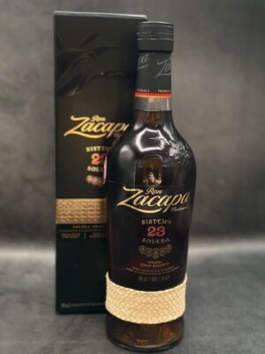This is the legendary Ron Zacapa 23, one of the world’s most awarded premium rums, presented in its iconic bottle with a hand-woven petate band.