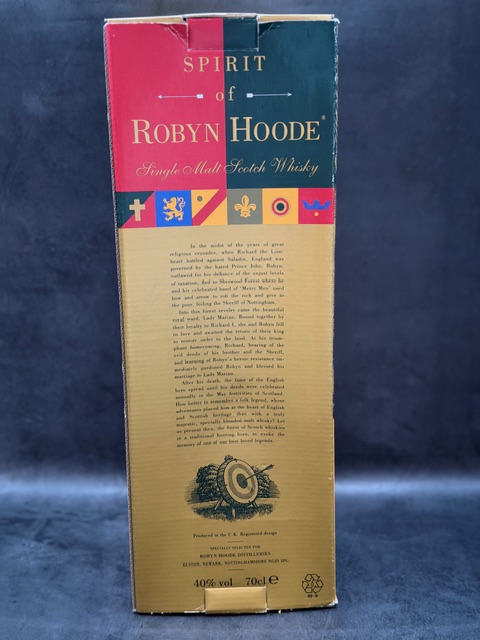 Investment Grade Packaging: The 70cl bottle is housed in its original illustrated box, which depicts Robyn Hoode in Sherwood Forest and provides the distillery’s historical context.